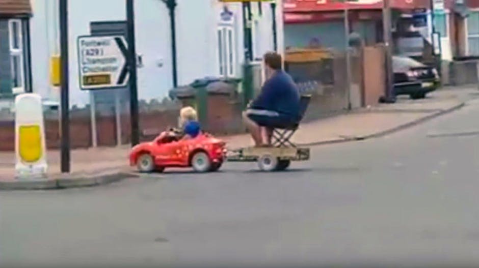Being a dad usually involves a lot of driving the family around, so you can forgive one father for letting his son do the job…