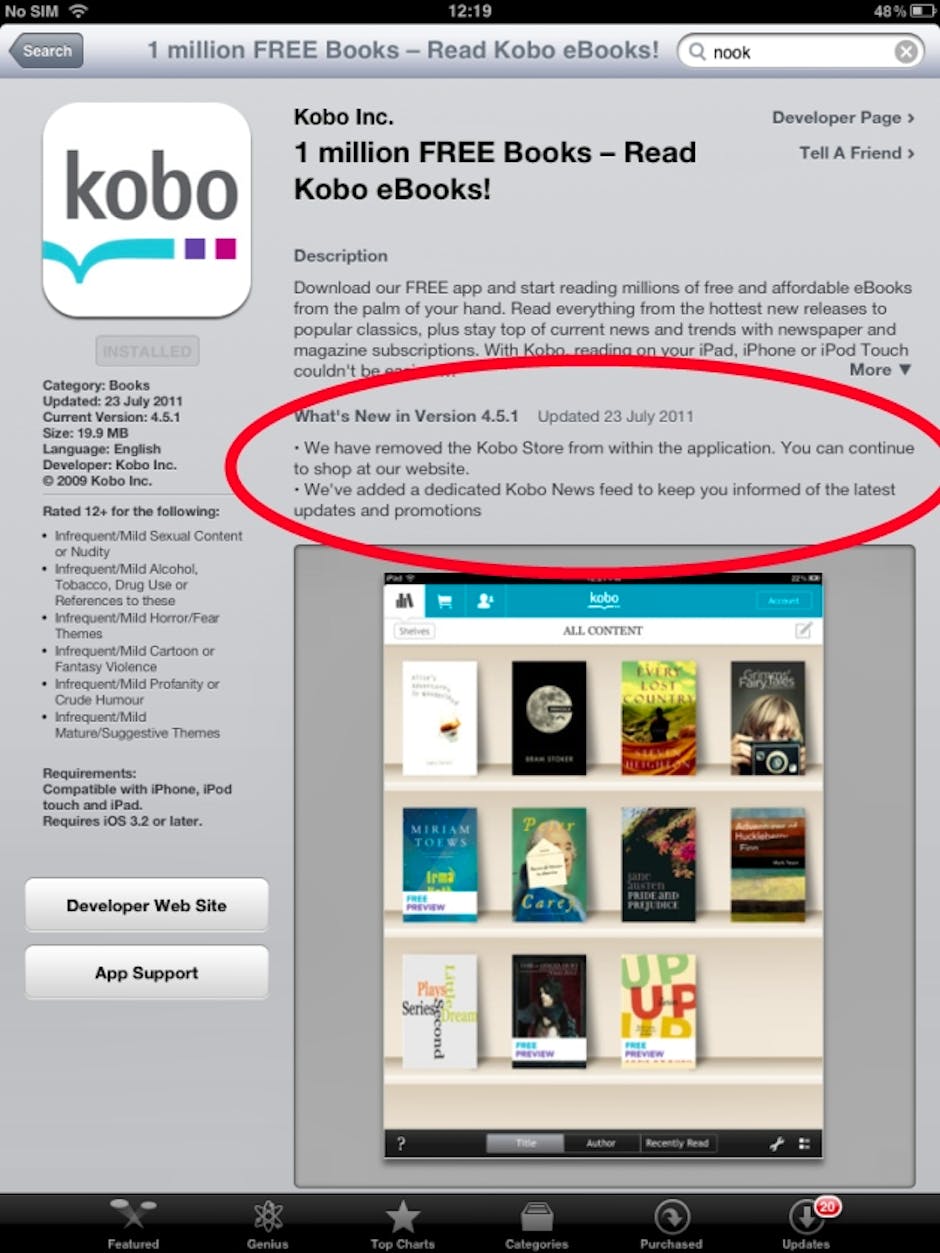 Apple iPad users of ebook app Kobo will find they are no longer able to access the web-based book store via the app, following Apple’s…