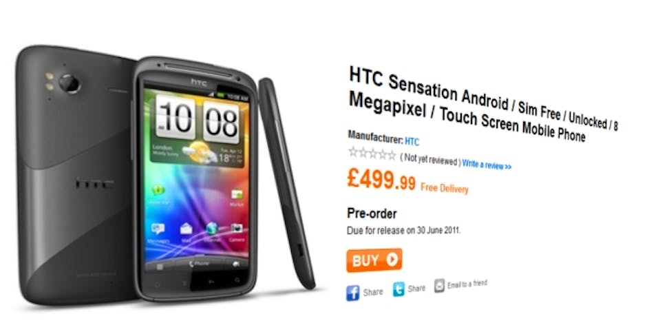 Play is the first to open up its pre-order page for the Sensation, HTC’s forthcoming dual-core smartphone. For a SIM-free model, you’ll be paying £500,…
